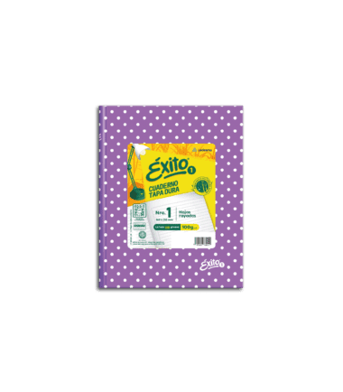 CUADERNO TAPA DURA E1 ÉXITO (16x21cm) FORRADO LILA CON LUNARES RAYADO