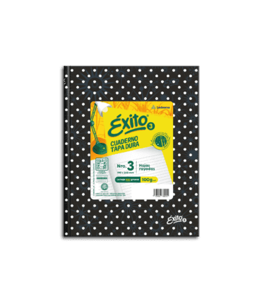 CUADERNO TAPA DURA E3 ÉXITO (19x24cm) FORRADO Negro LUNARES RAYADO