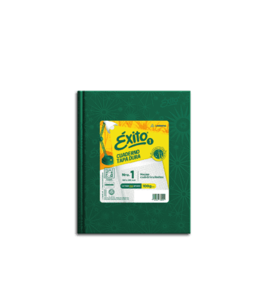 CUADERNO TAPA DURA E1 ÉXITO (16x21cm) FORRADO VERDE HOJAS CUADRICULADAS