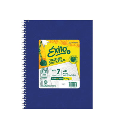 Cuaderno Con Espiral E7 (21×27 cm) Éxito, Tapa Dura Forrado Sin Micropuntillado Ni Perforaciones Cuadriculado, 60 Hojas, 100 G/M2, Color Azul. Código: 101967 100 Hojas, 100 G/M2, Color Azul. Código: 101990