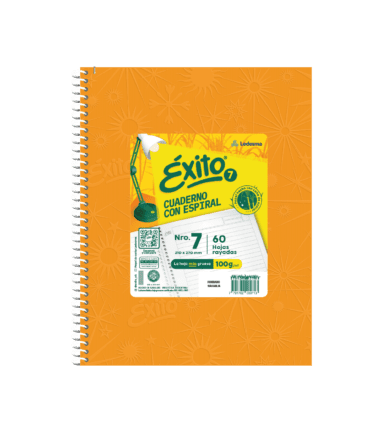 CUADERNO CON ESPIRAL E7 ÉXITO (21x27cm) FORRADO NARANJA 60 HOJAS RAYADAS