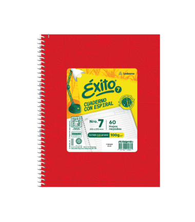 CUADERNO CON ESPIRAL E7 ÉXITO (21x27cm), Tapa Dura Forrado Universo Sin Micropuntillado Ni Perforaciones Rayado, 60 Hojas, 100 G/M2, Color Rojo. Código: 101984 100 Hojas, 100 G/M2, Color Rojo. Código: 101985