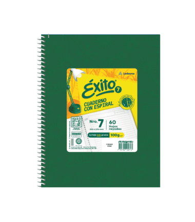 CUADERNO CON ESPIRAL E7 ÉXITO (21x27cm) Forrado Verde CUADRICULADO