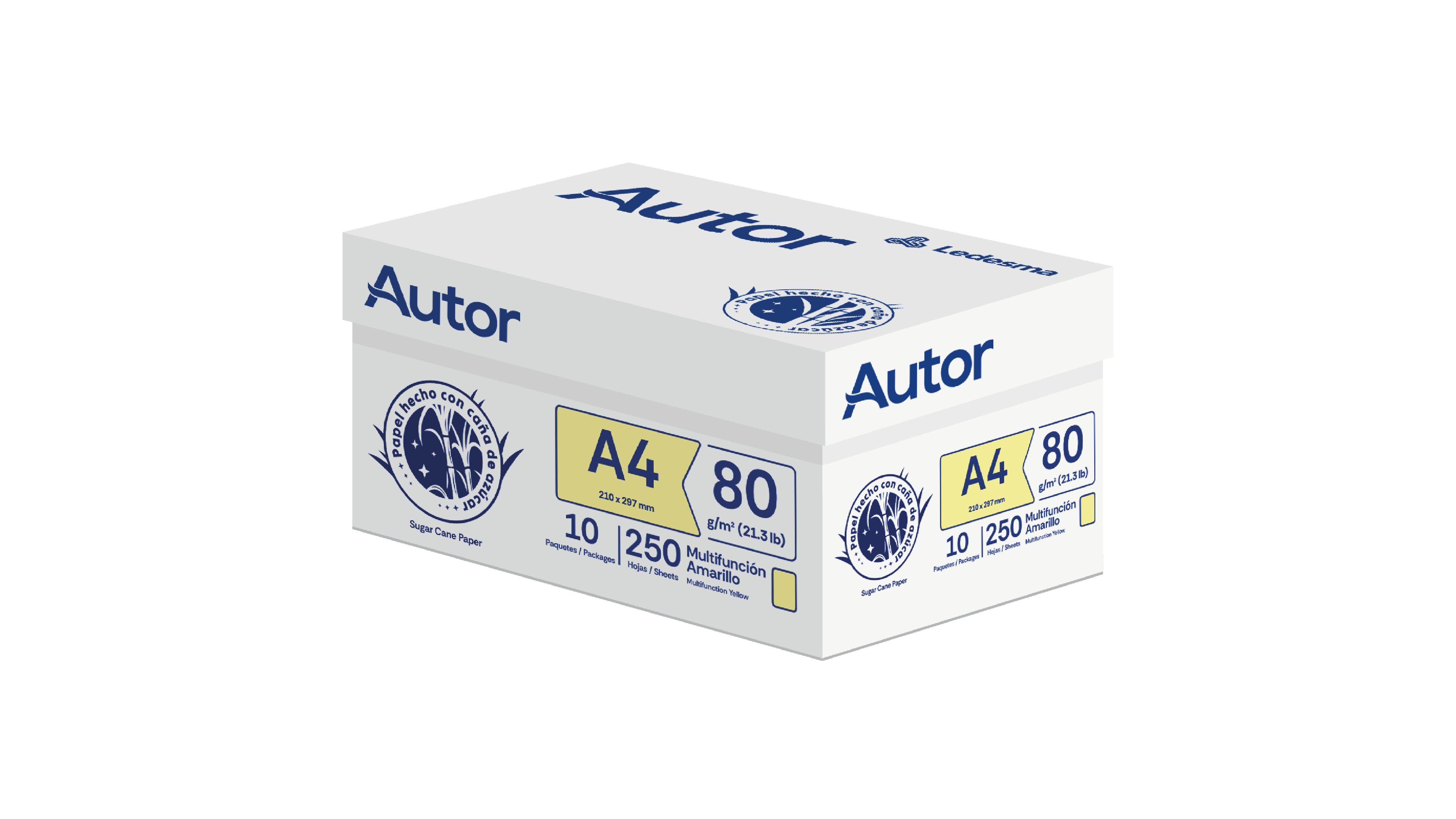 | Resma Autor 80G. A4 Amarillo 250 Hojas. Código: 100731 Caja de 10 unidades |