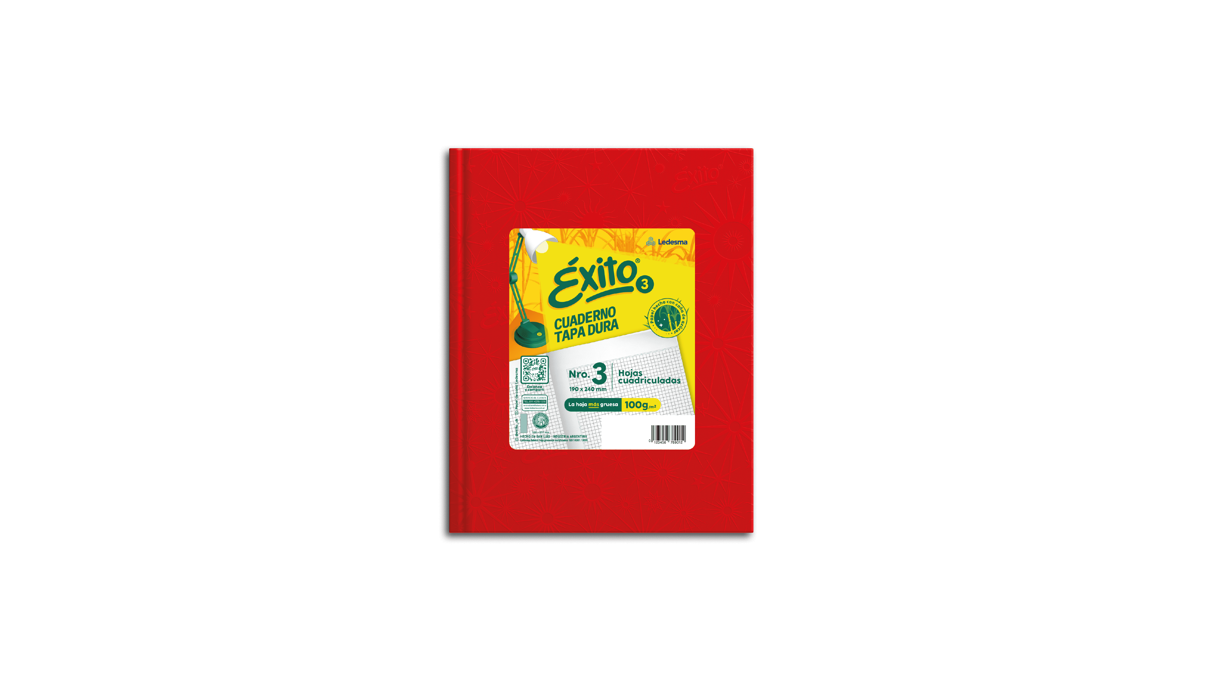CUADERNO TAPA DURA E3 ÉXITO (19x24cm) FORRADO ROJO UNIVERSO CUADRICULADO