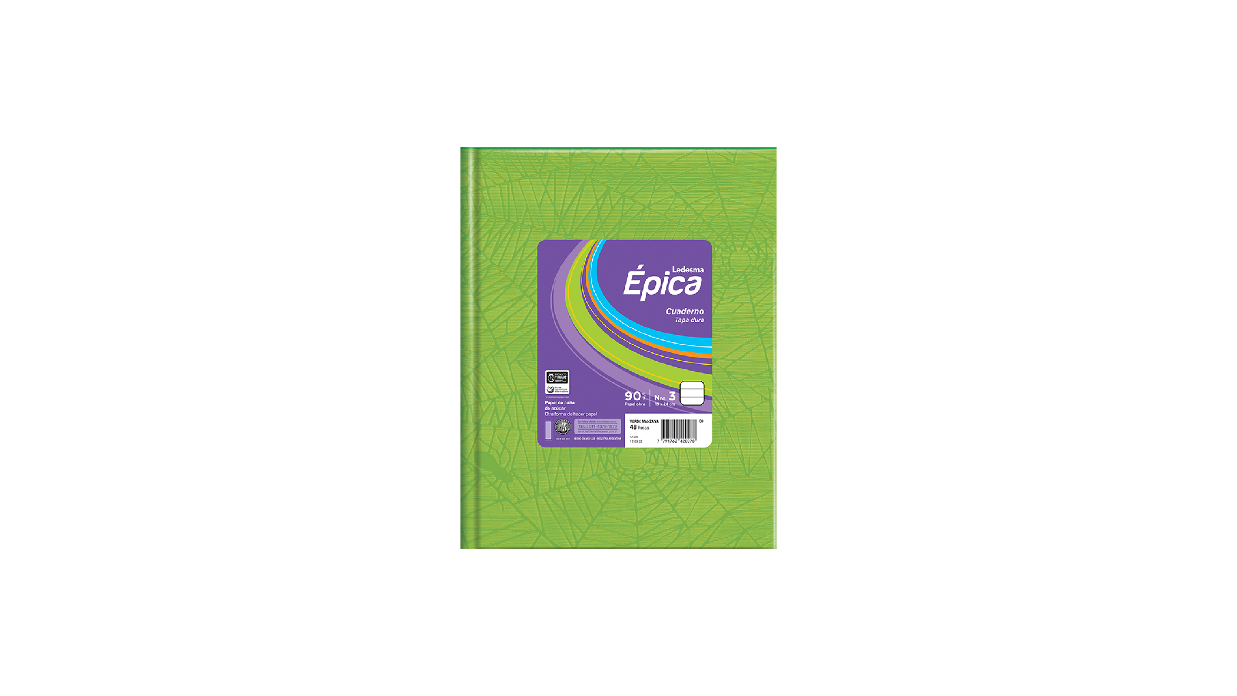 CUADERNO TAPA DURA LEDESMA ÉPICA N°3 (19X24cm) FORRADO ARAÑA VERDE MANZANA 48 HOJAS RAYADAS Cod: 105855