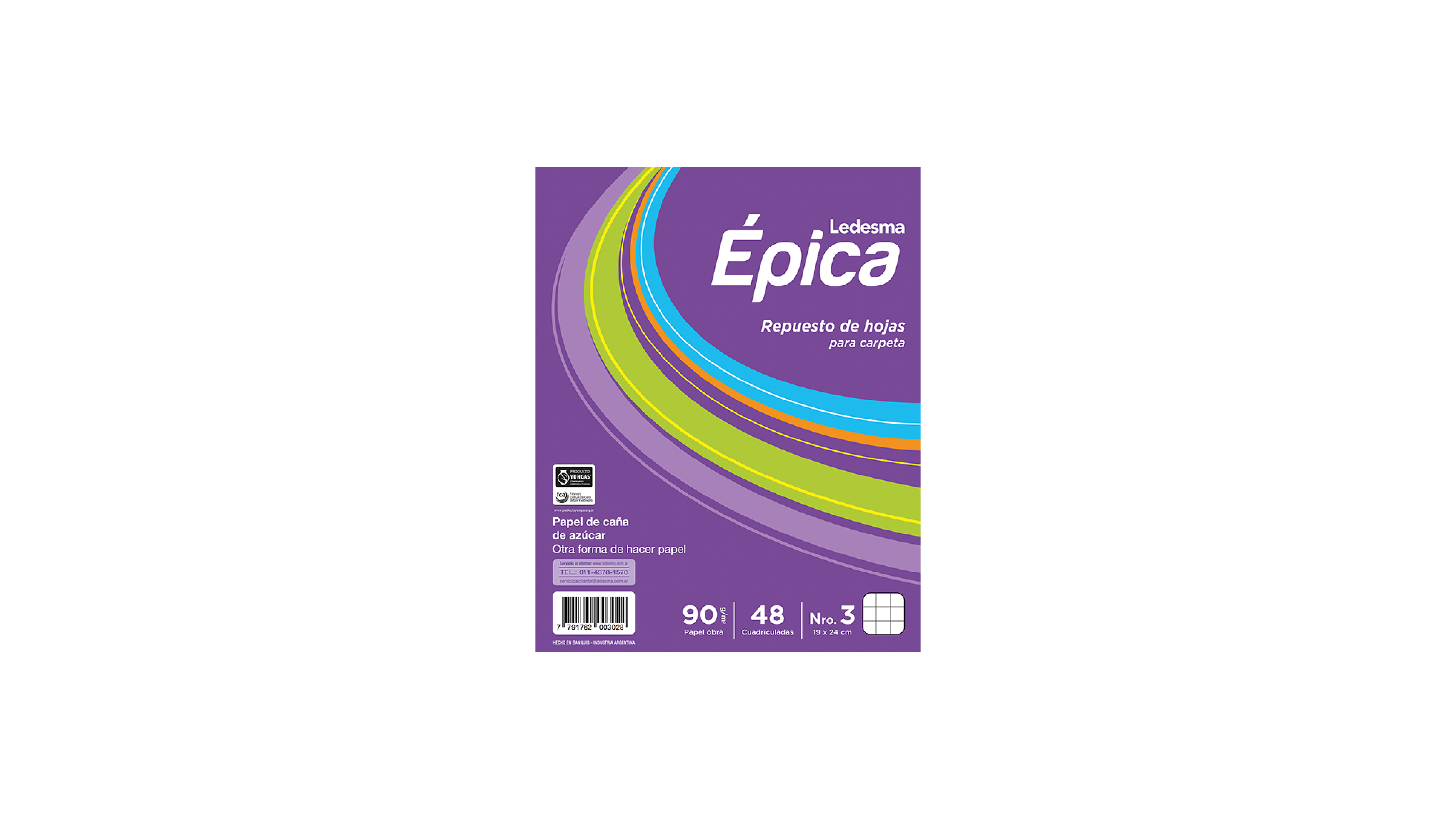 Repuesto Escolar N°3 Ledesma Épica 480 Hojas cuadriculadas – 90GR. Código: 105818