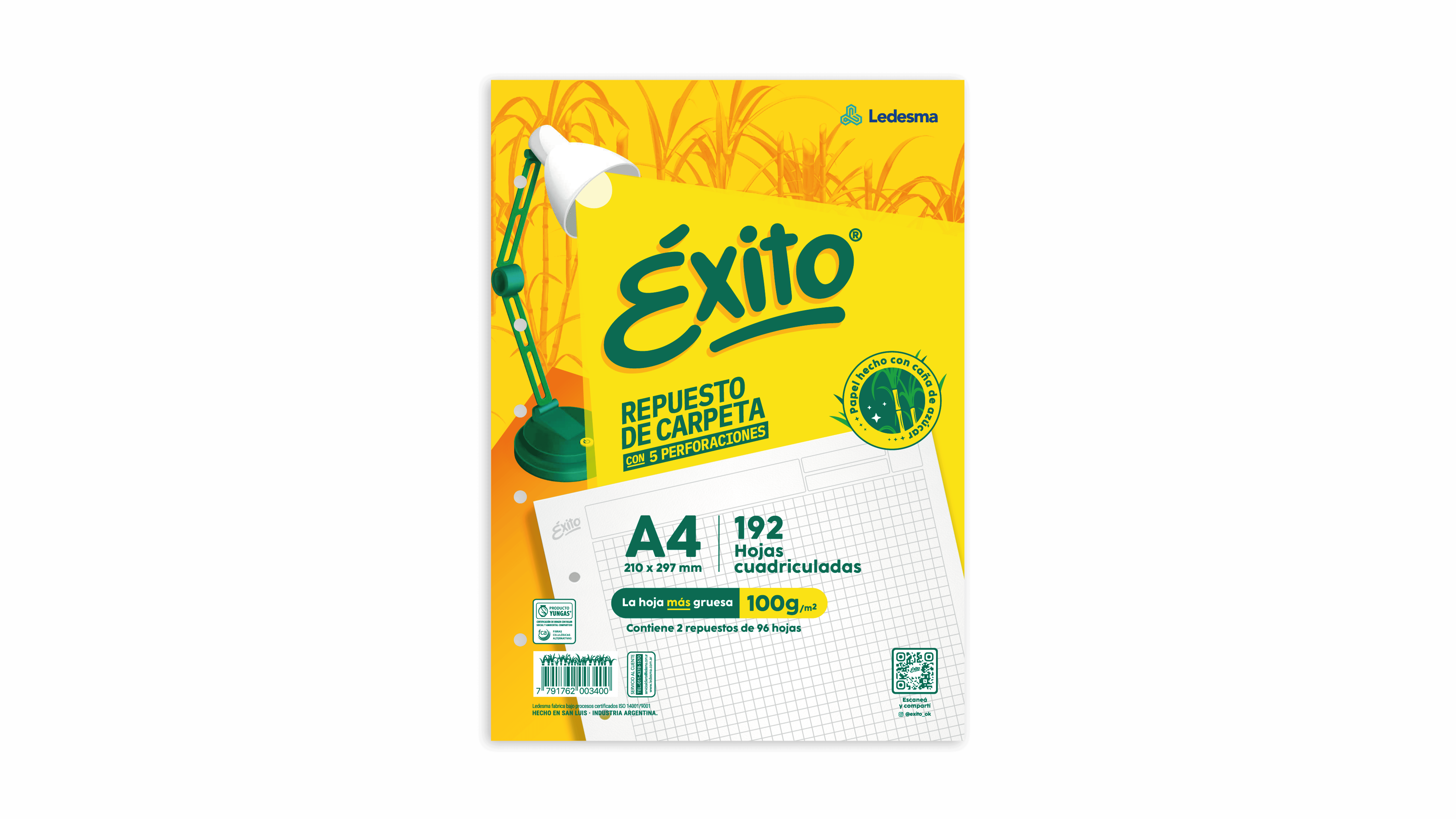 REPUESTO PARA CARPETA A4 ÉXITO (21×29,7cm) TRADICIONAL RAYADO 192 HOJAS