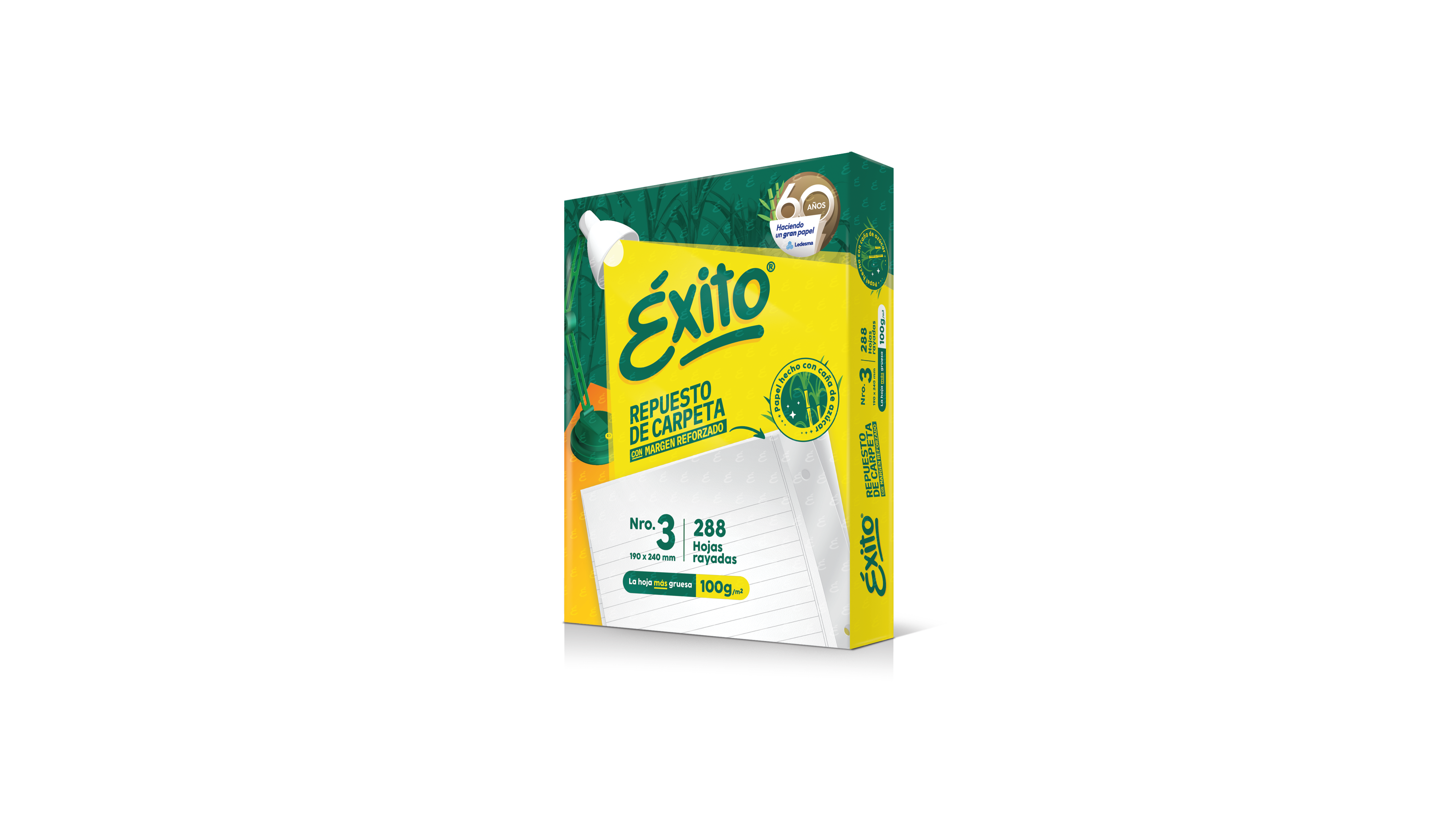 REPUESTO PARA CARPETA N°3 ÉXITO CON MARGEN REFORZADO RAYADO x 288 HOJAS