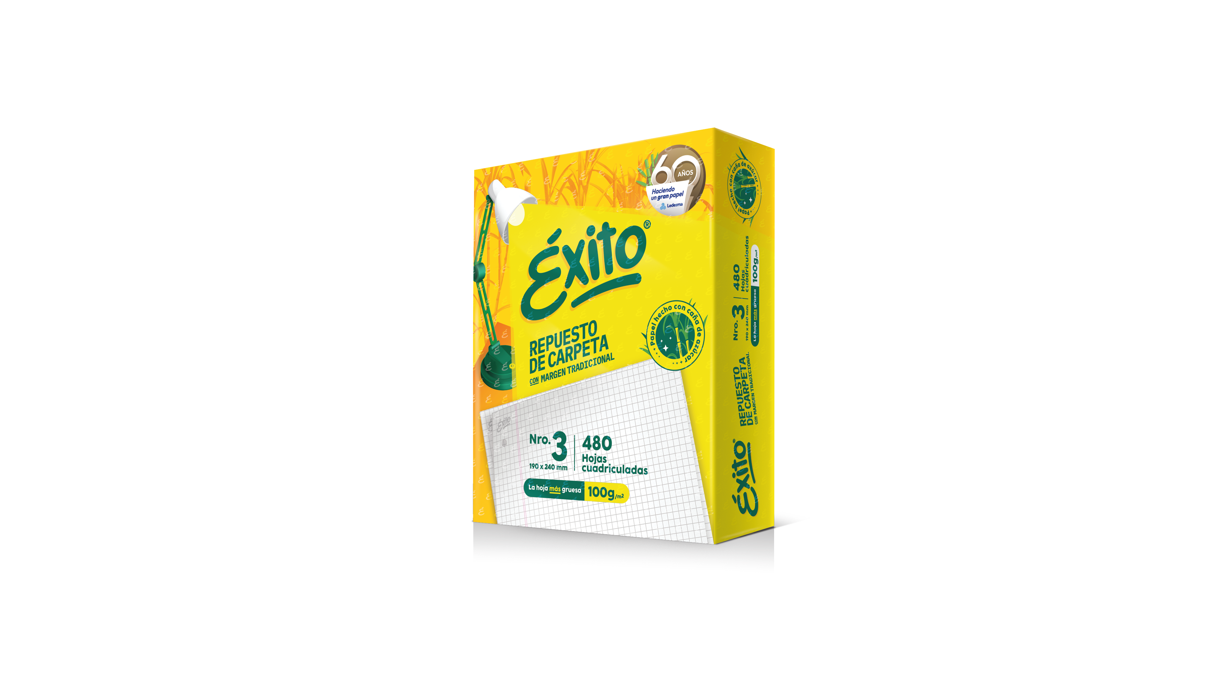 REPUESTO PARA CARPETA N°3 ÉXITO CUADRICULADO x 480 HOJAS
