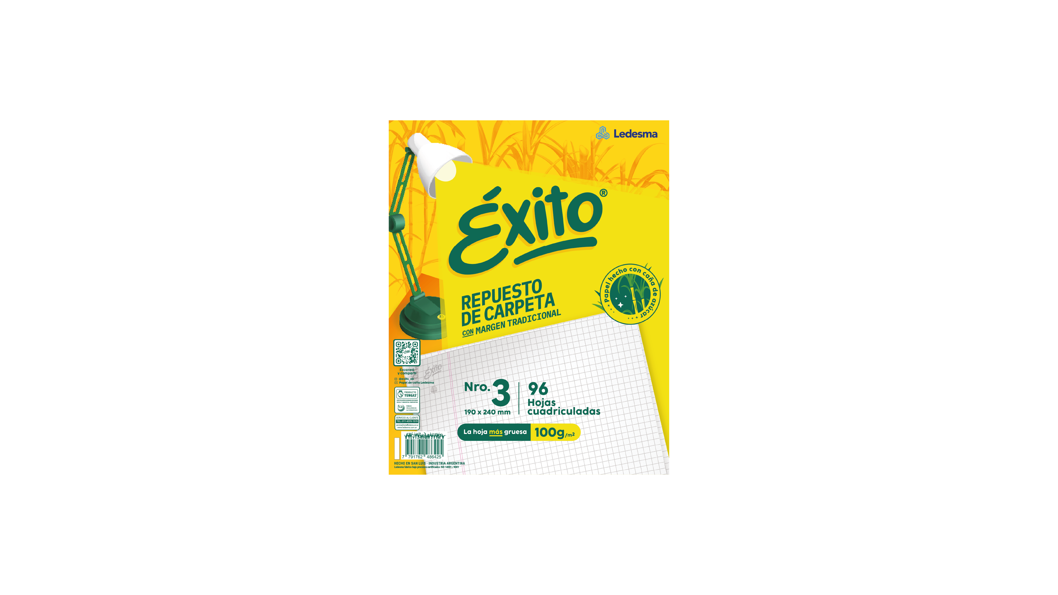 | Repuesto Para Carpeta Éxito N°3 Cuadriculado X 96 Hojas, 100G/M2. Código: 100911 |