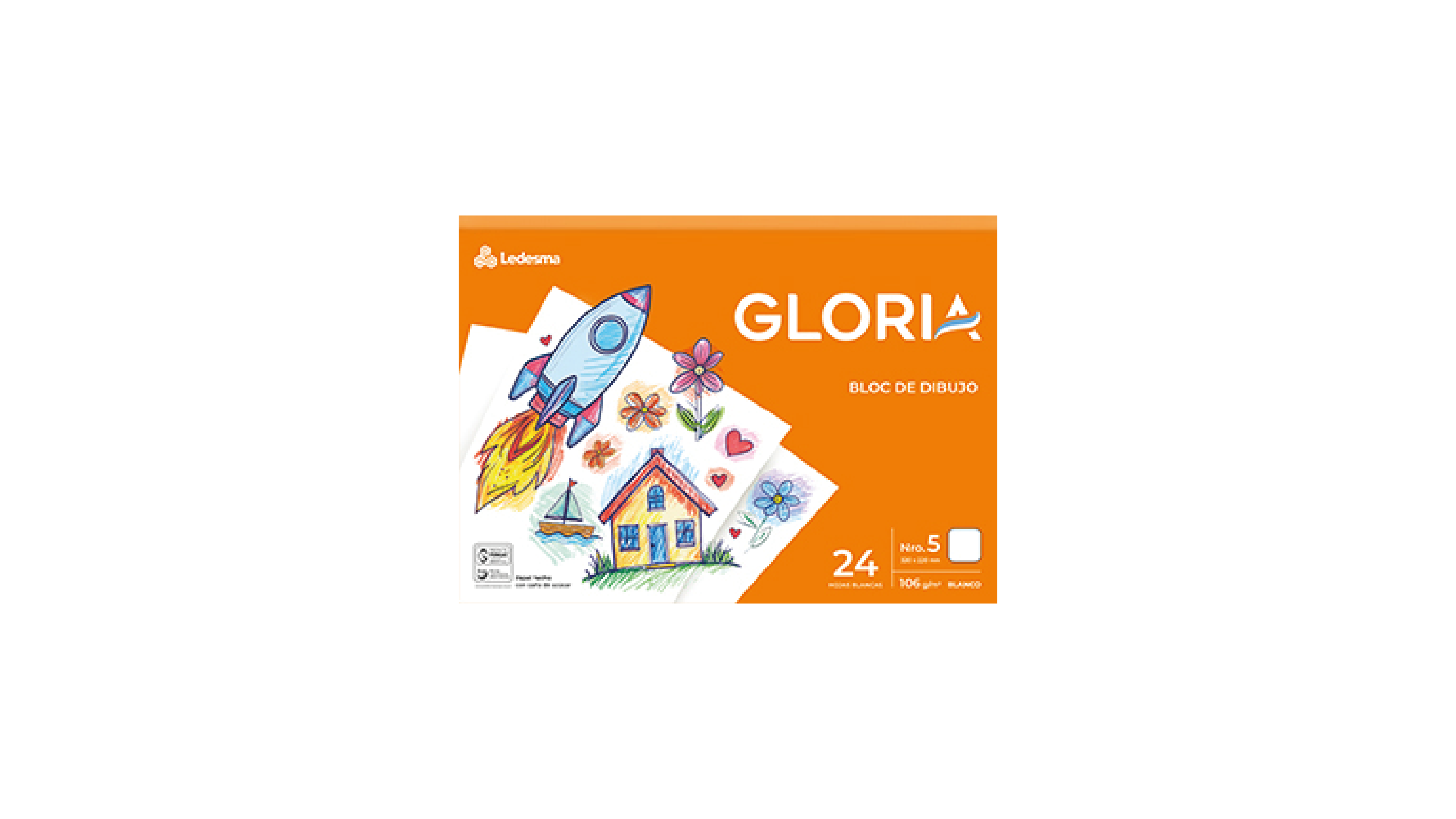 Bloc De Dibujo N°5 Gloria Blanco X 24 Hojas, 106 G/M2. Código: 103602